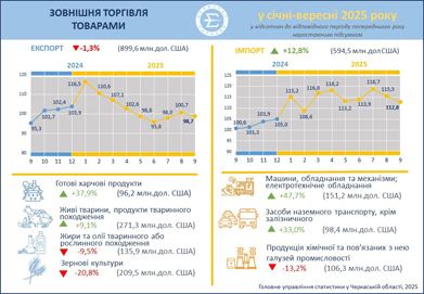 "Зовнішня торгівля товарами Черкаської області за січень–вересень 2025 року"